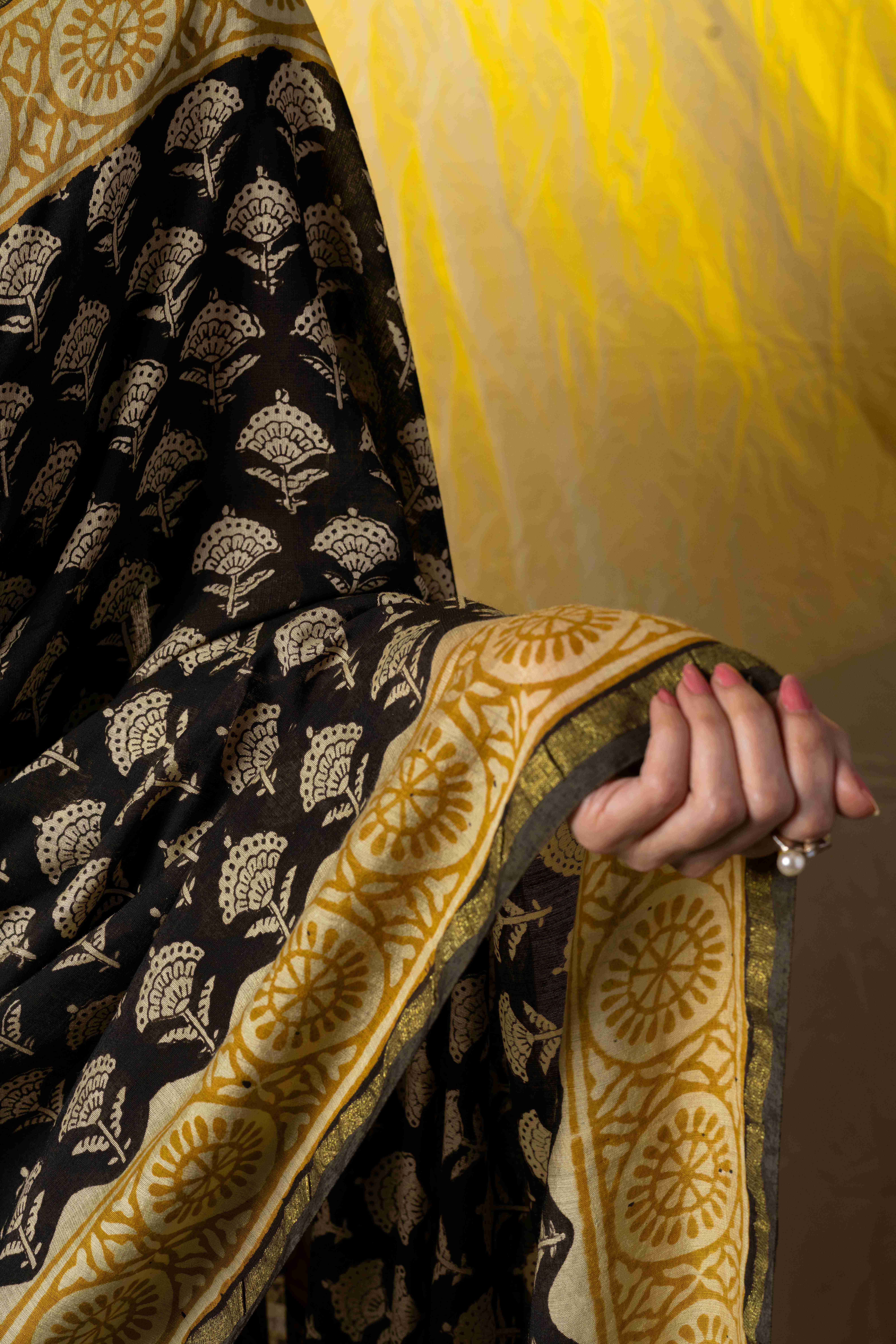 Home / Products / Sarees / Preeti Pawar Couture / Black Chanderi Handpainted Saree