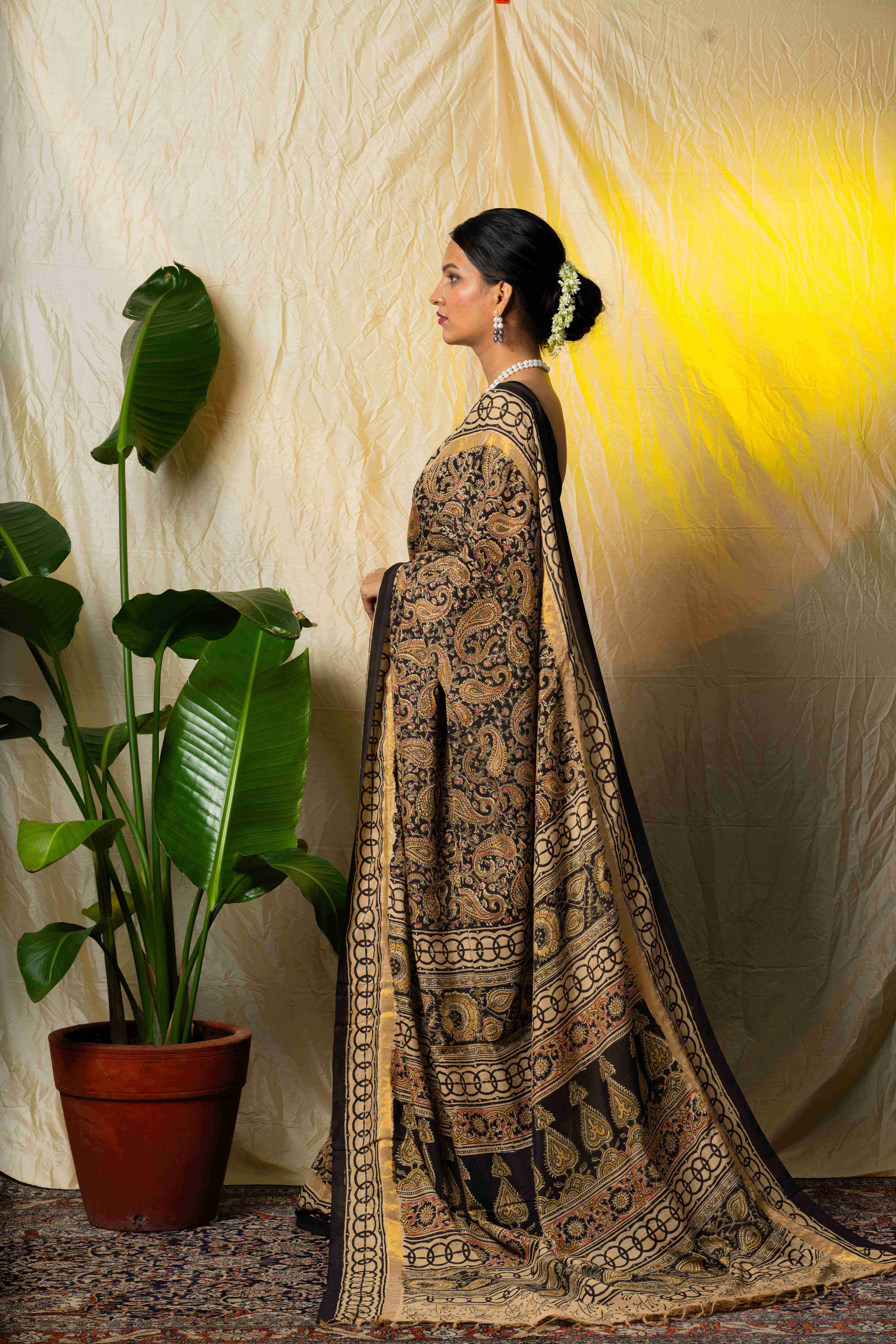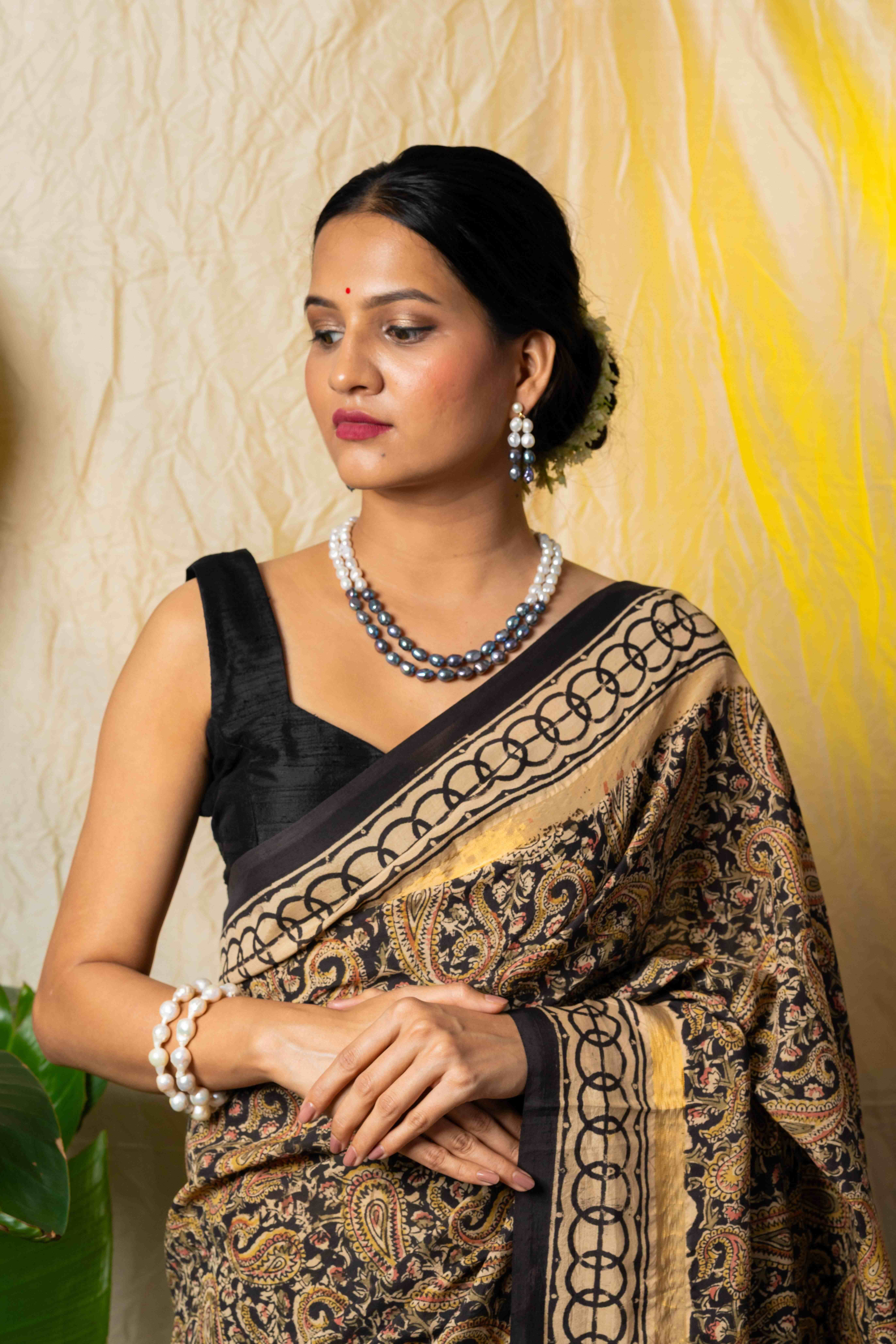 Look Regal in this beautiful drape is a black chennur silk saree slight difference in shade might appear due to camera lights.