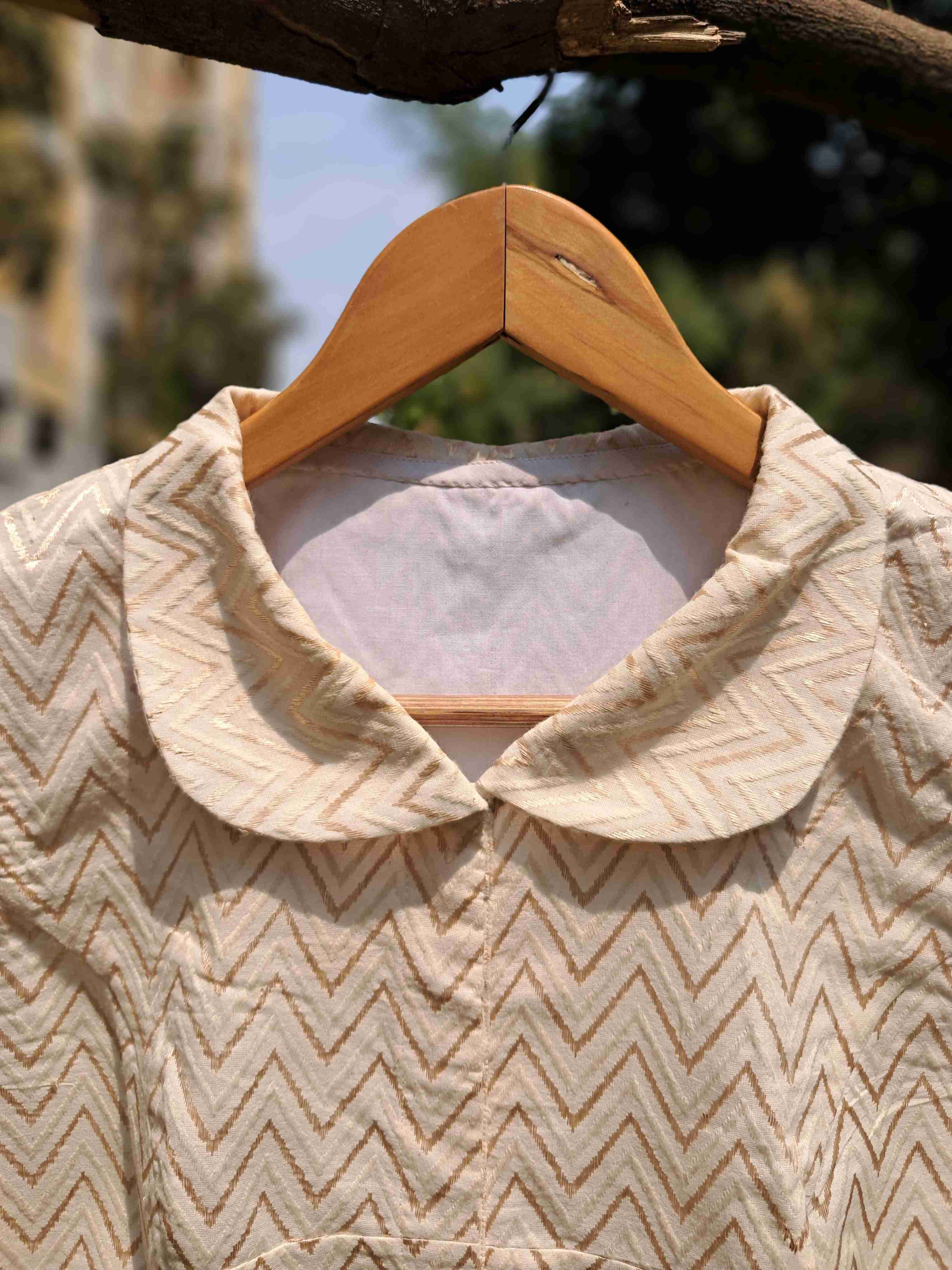 Cream Cotton Blouse With Peter Pan Collar .