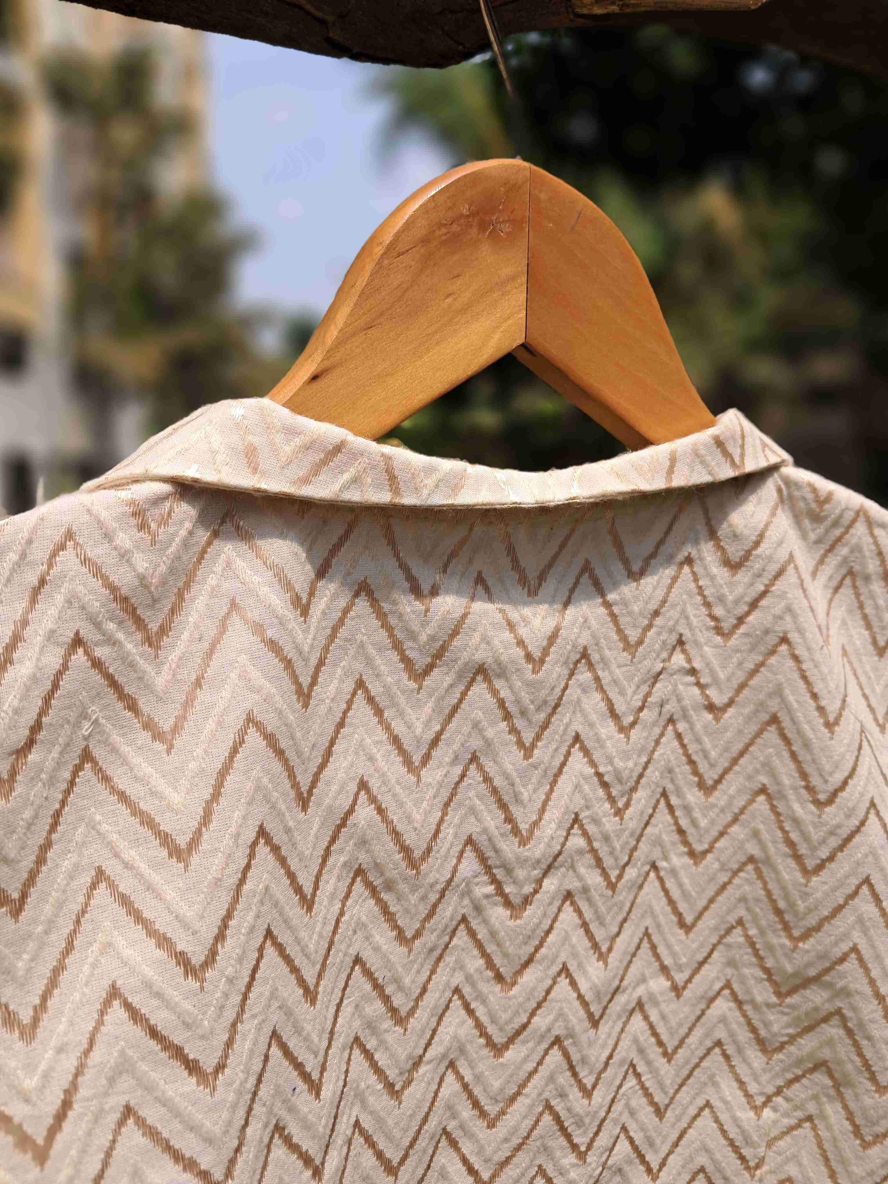 Cream Cotton Blouse With Peter Pan Collar .Front Hook Opening. Padded With Cotton Linning. Slight Difference In shade Might Appear Due To Camera Light. This Can Be Alter From 34 To 38 Size.