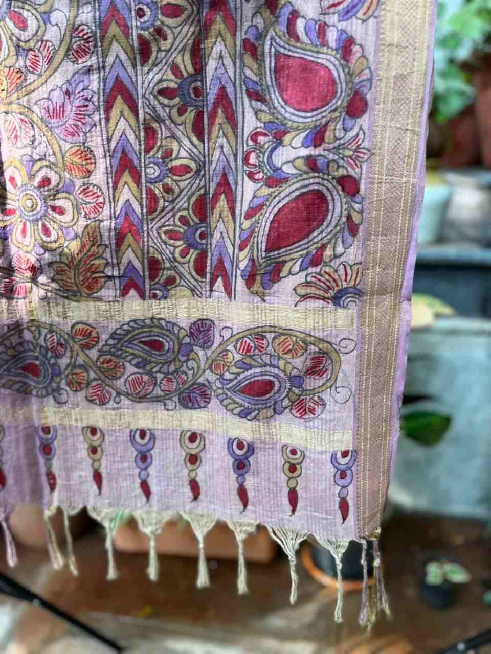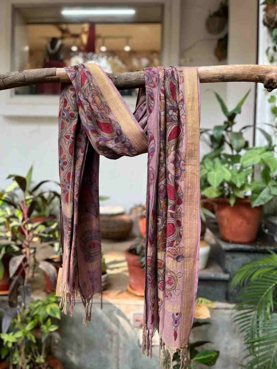 Soft coton dupatta featuring intricate handpainted kalamkari designs-light, brathable and perfect for an elegant ethnic look.