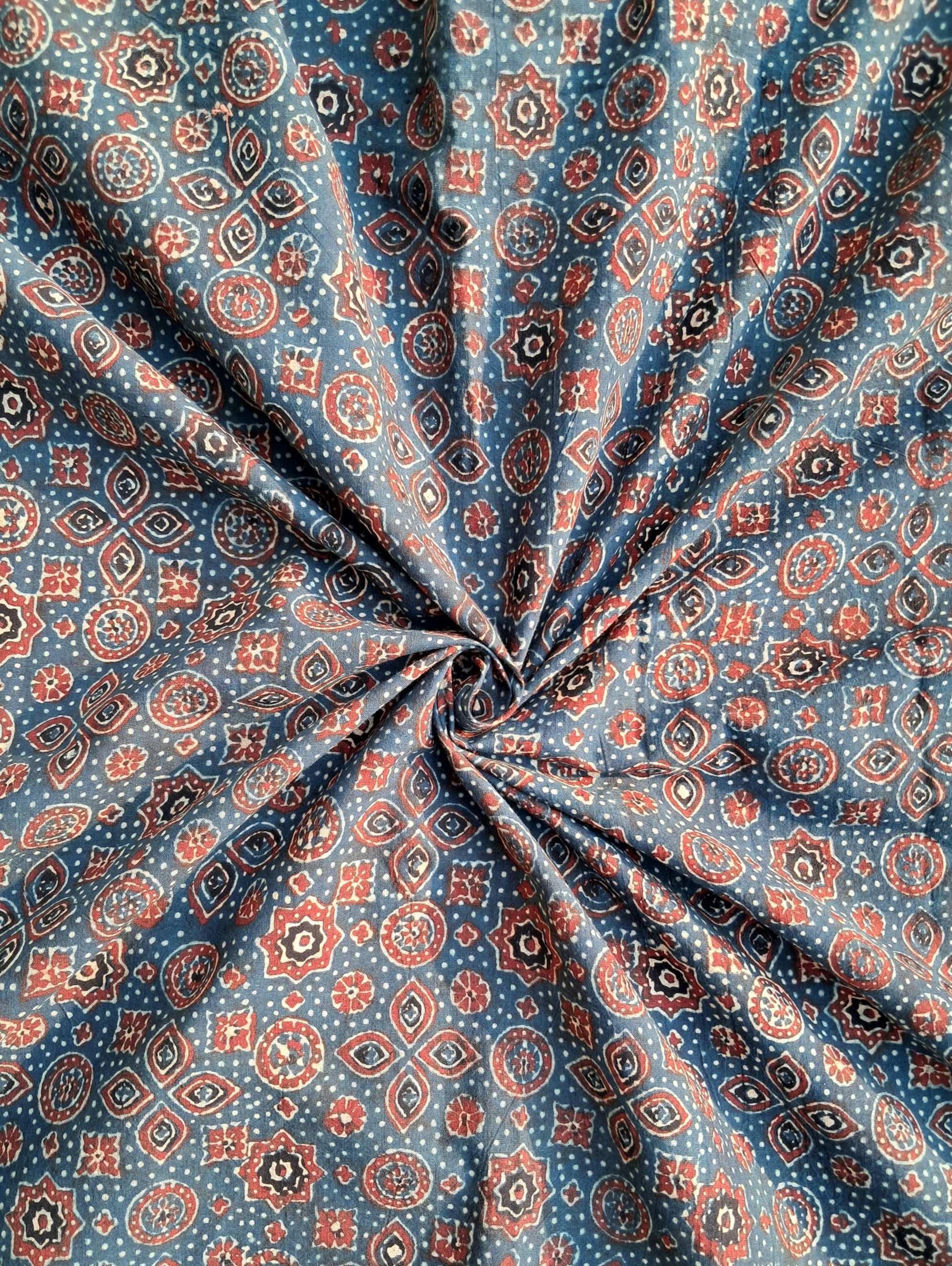 Immerse Yourself In This Beauty Of Signature Blue Ajrakh Handblock Printed Cotton Fabric. The Fabric is Absolutely Skin Friendly and Sustainable.Slight Difference In Shade Might Appear Due To Camera Light. 100% Pure Cotton Unstiched Fabric For Men & Women. Kindly Cherish The Imperfections In The Most Perfect Way.