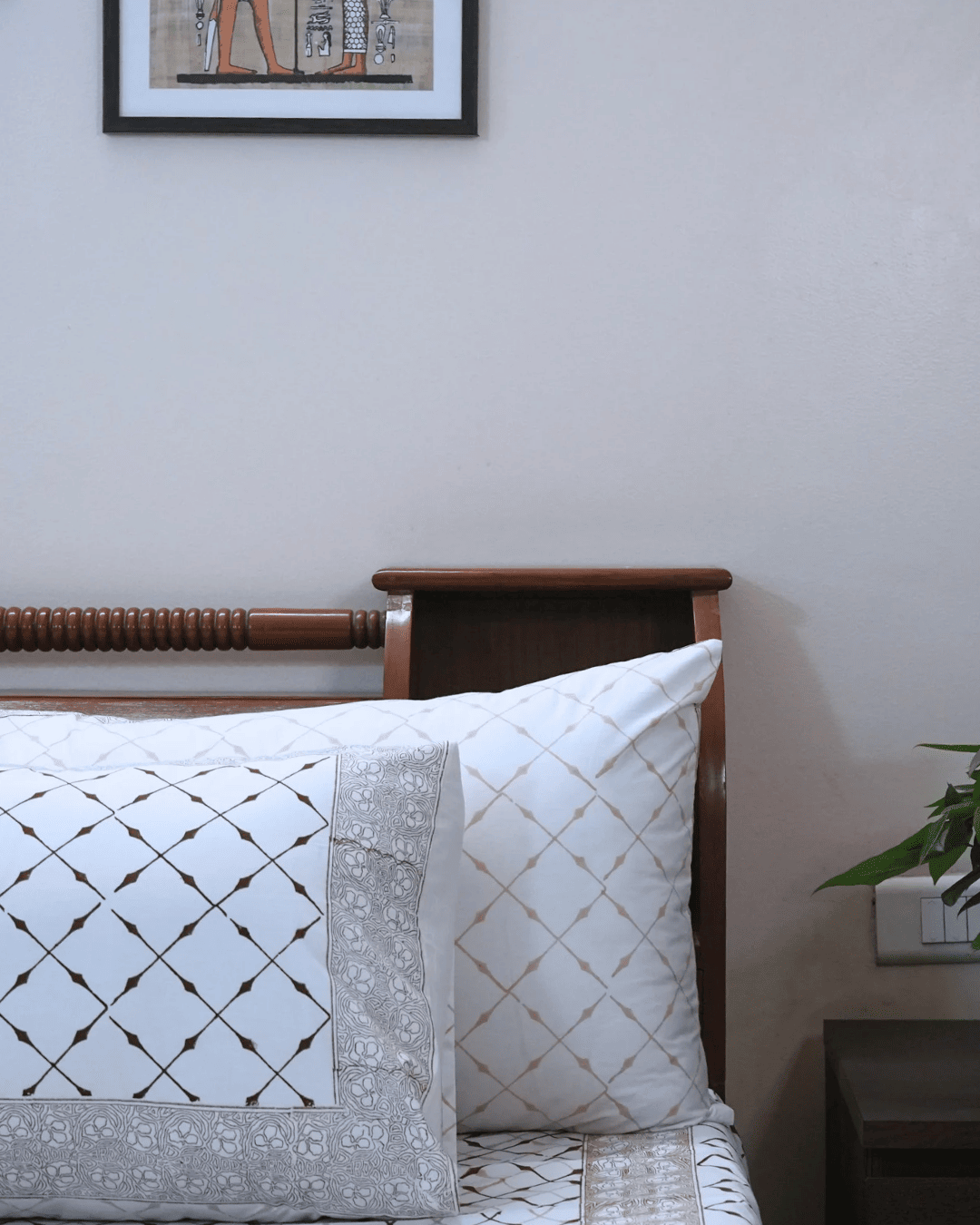 Handblock Printed King Size Bed Cover With 2 Pillow Covers. Add a touch of timeless elegance to your bedroom wih this handcrafted bed cover, made using traditional handblock printing techniques. Crafted from 100% coton and printed with eco-frindly dyes, it's soft, breathable, and beautifully unique.