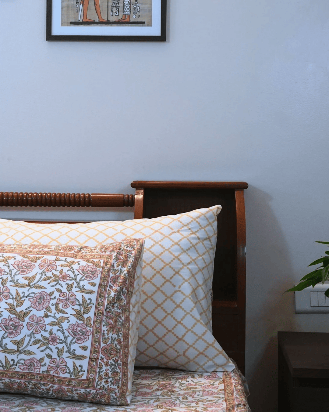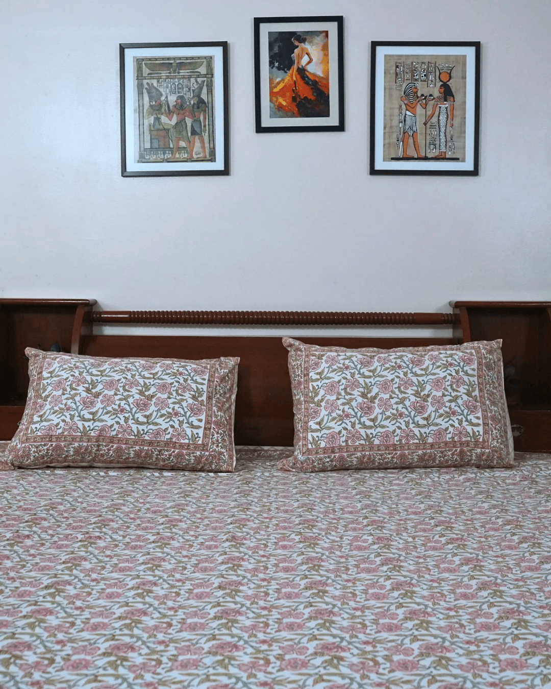 Handblock Printed King Size Bed Cover With 2 Pillow Covers. Add a touch of timeless elegance to your bedroom wih this handcrafted bed cover, made using traditional handblock printing techniques. Crafted from 100% coton and printed with eco-frindly dyes, it's soft, breathable, and beautifully unique.