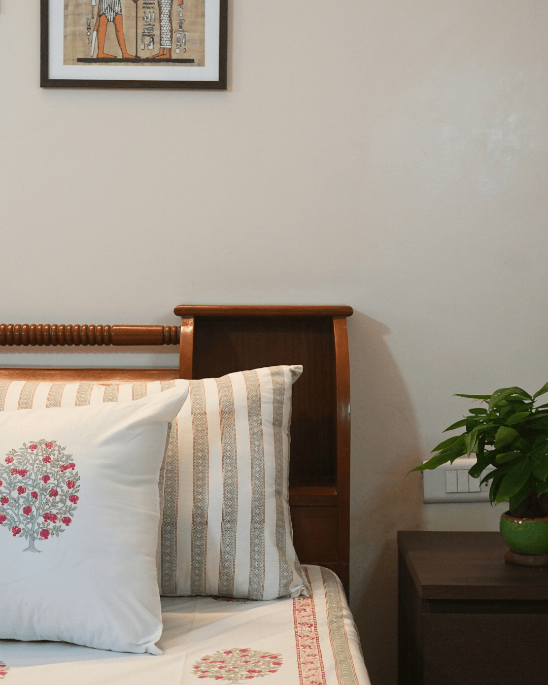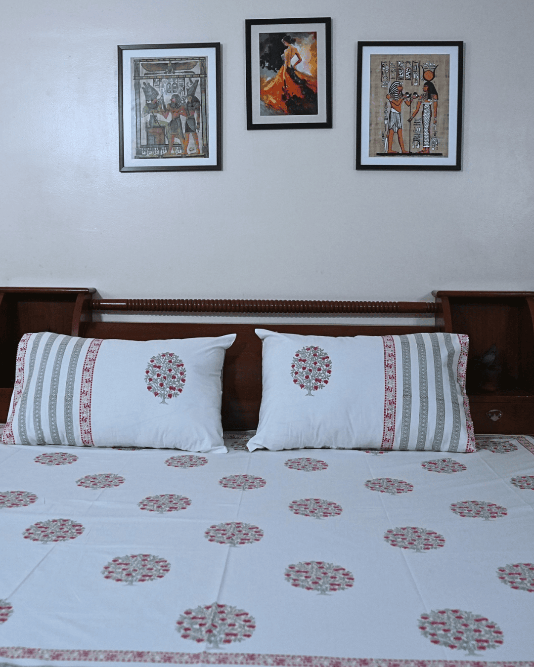 Handblock Printed King Size Bed Cover With 2 Pillow And 2 Cushion Covers. Add a touch of timeless elegance to your bedroom wih this handcrafted bed cover, made using traditional handblock printing techniques. Crafted from 100% coton and printed with eco-frindly dyes, it's soft, breathable, and beautifully unique.