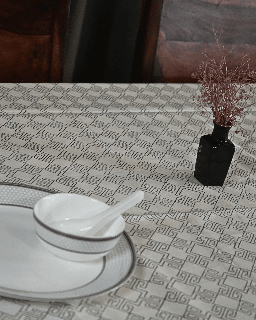 A beautifully handcrafted table cloth four seater featuring traditional handblock prints. Made from soft, premium cotton, it showcases intricate motifs stamped by skilled artisans. Its vibrant yet elegant design adds a touch of artistry and charm to any dining space. Perfect for daily use or special occasions.