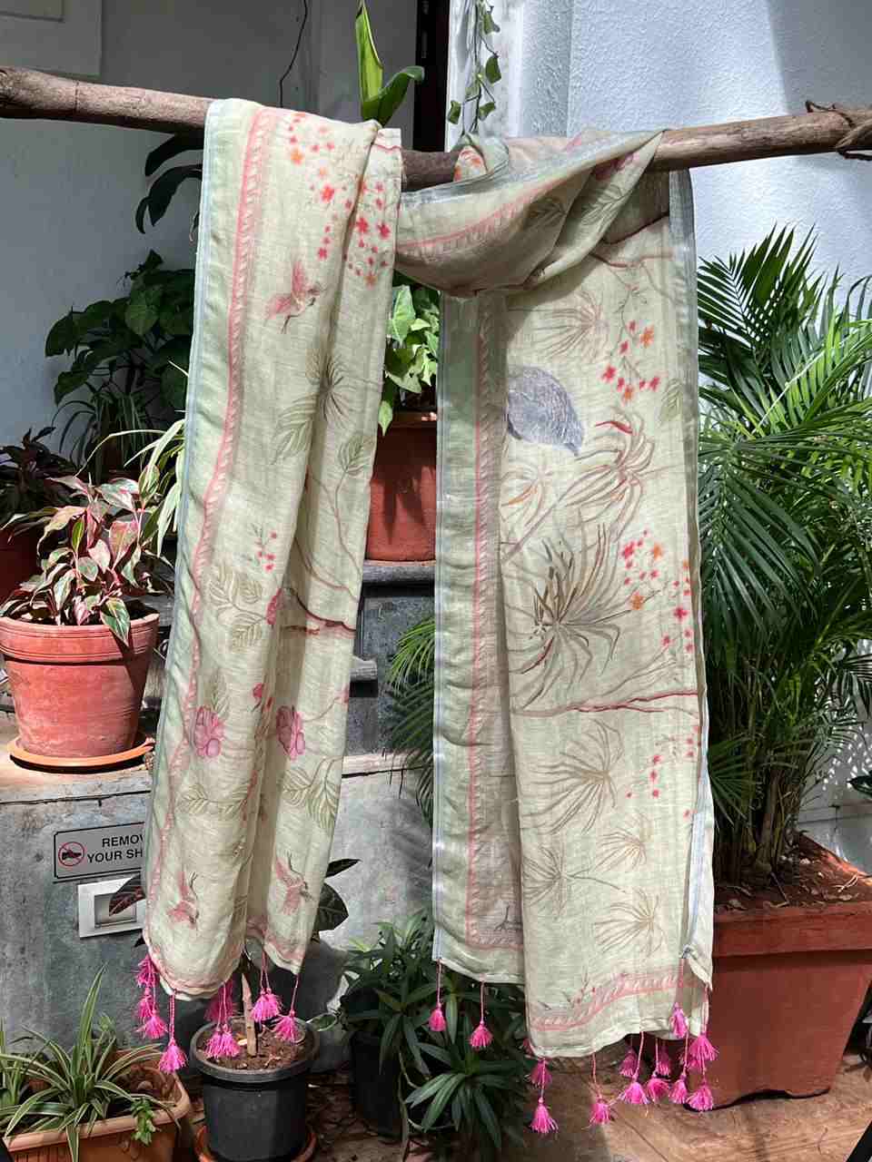 Soft linen dupatta adorned with intricate kalamkari prints-light, breathable, and beautifully artistic for an effortlessly elegant look.