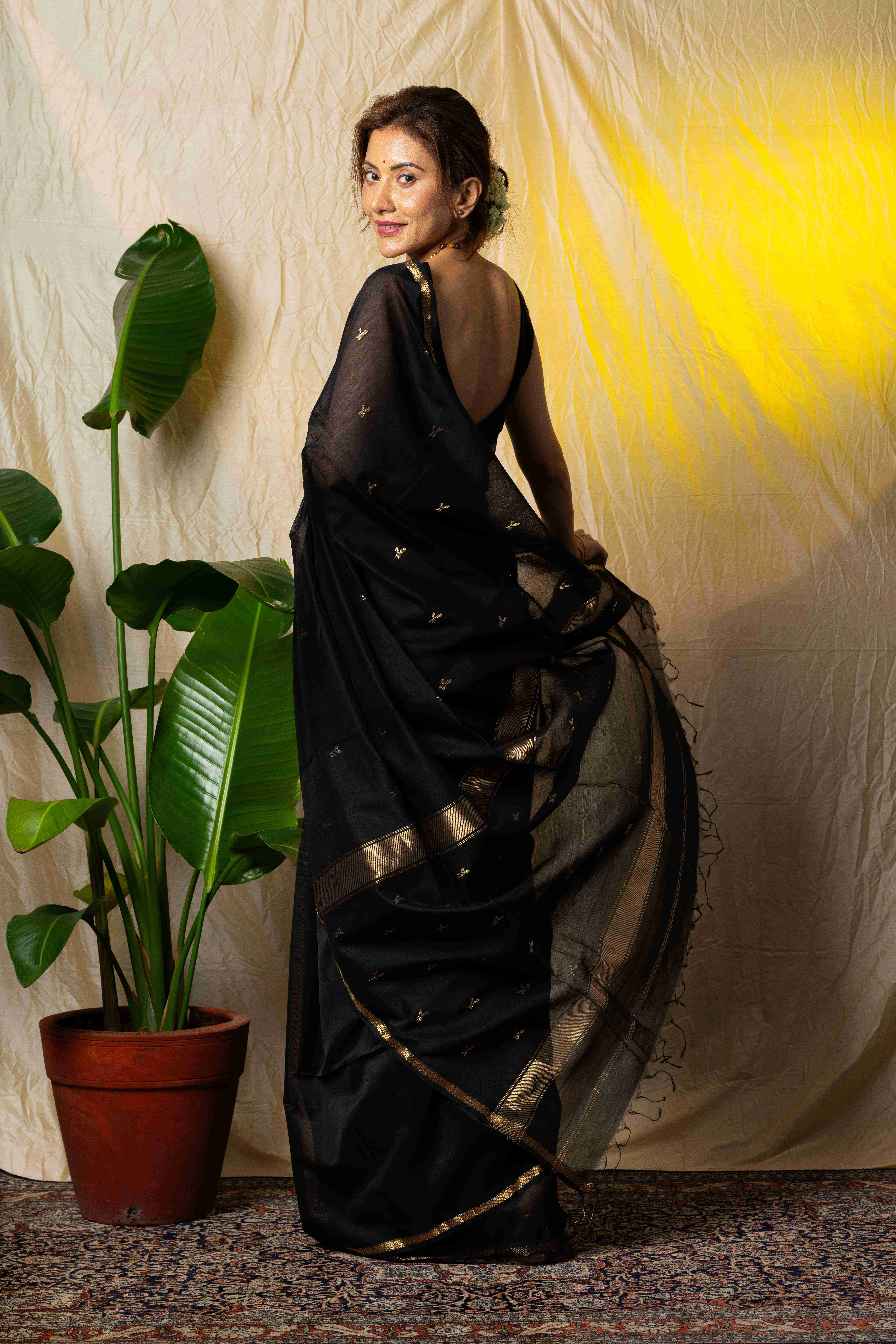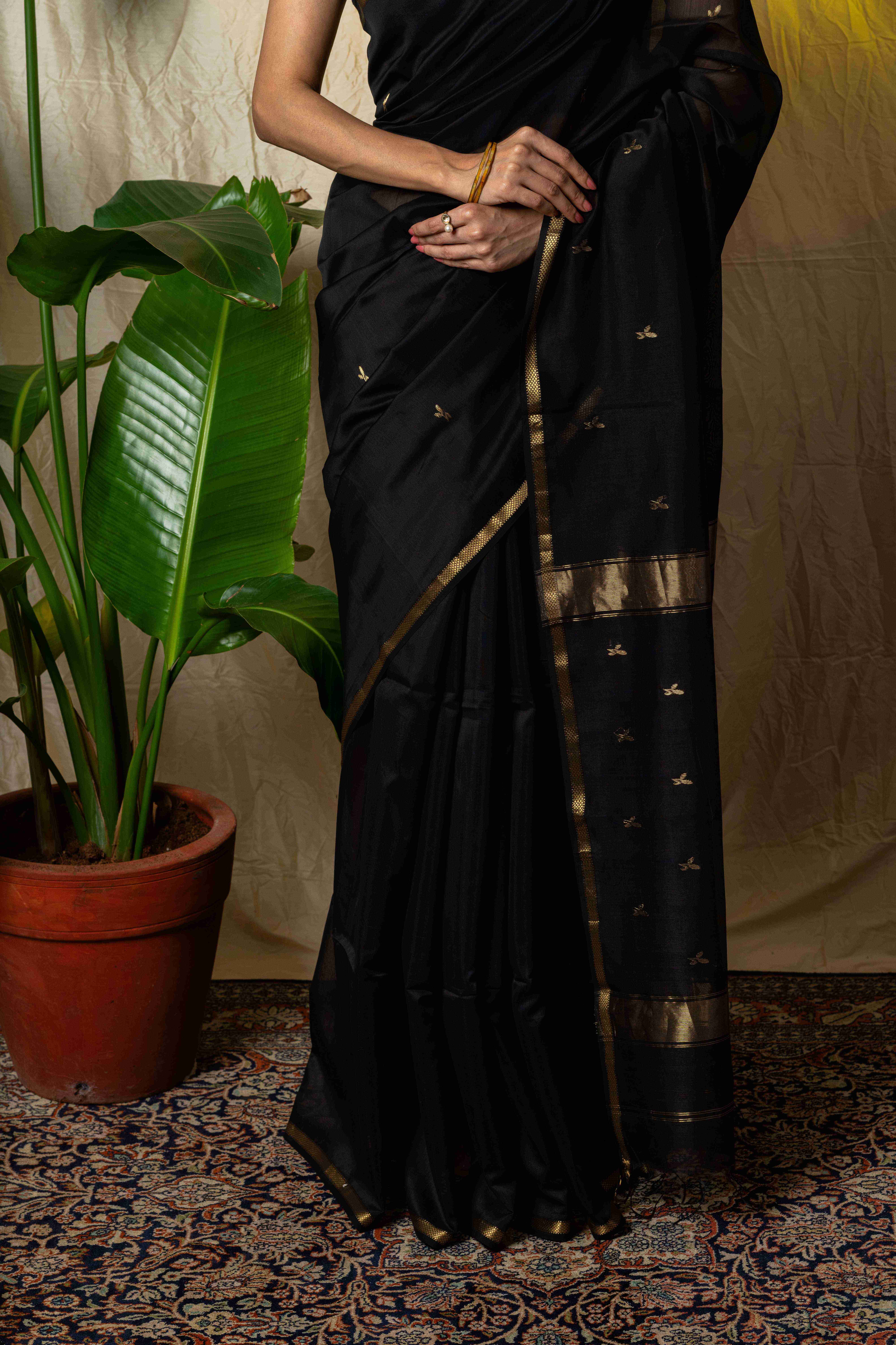Black Maheshwari Silk Saree