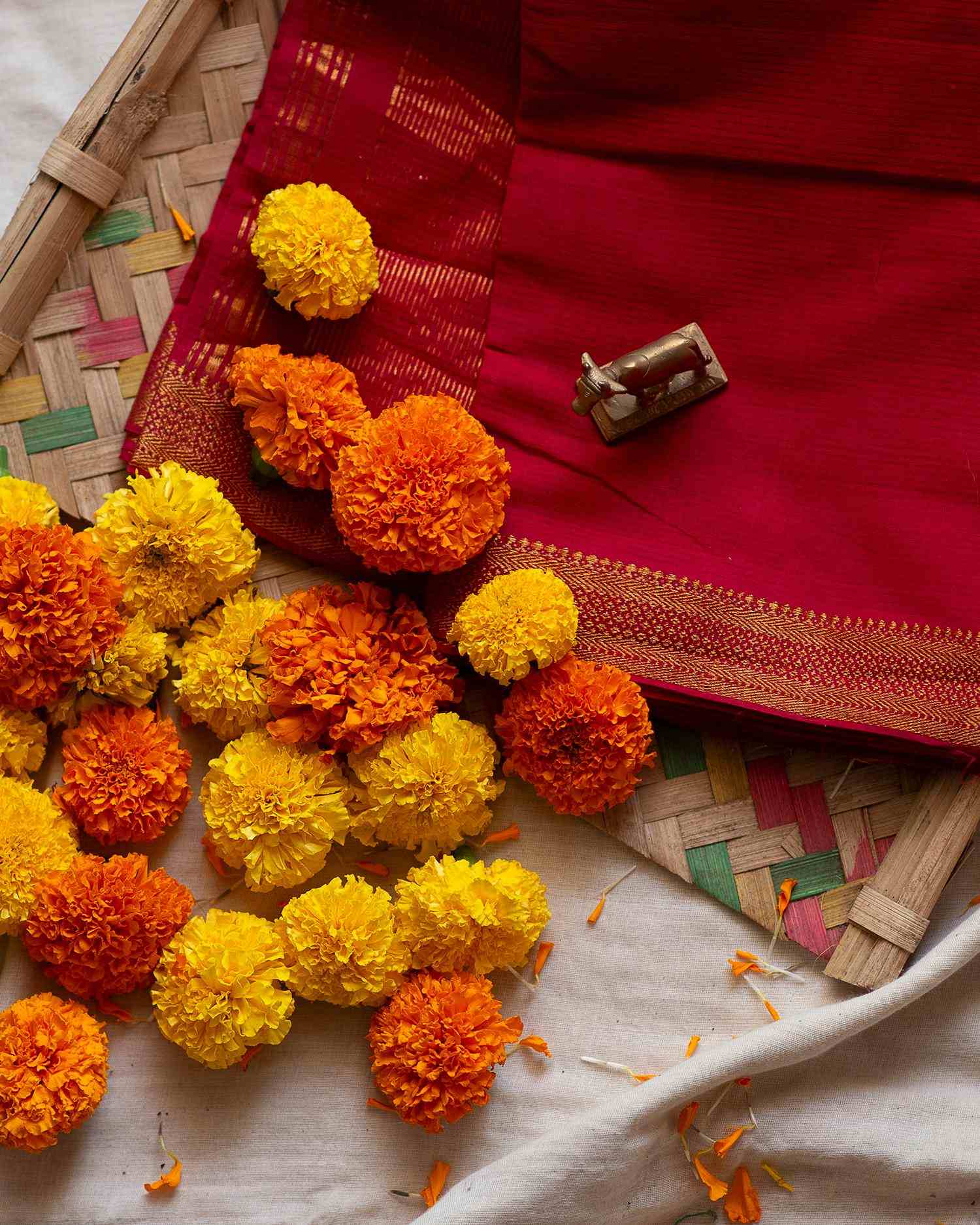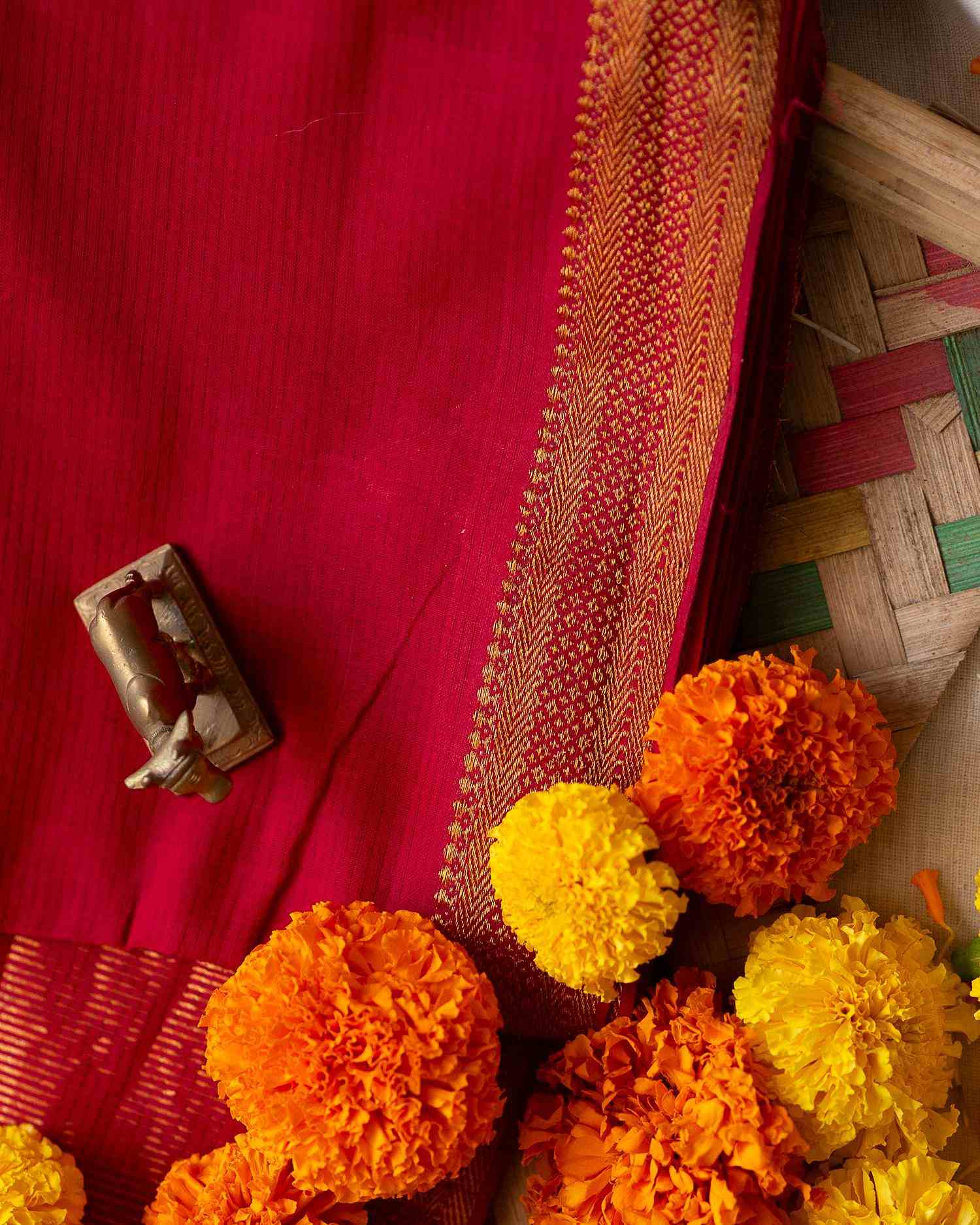 Look Regal In This Beautiful Drape Is A Red Mangalgiri Cotton Saree Slight Difference In Shade Might Appear Due To Camera Lights