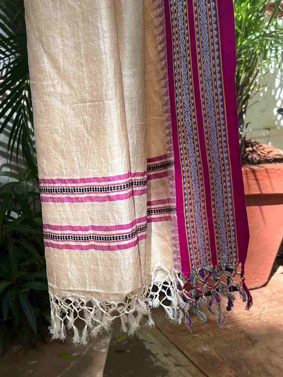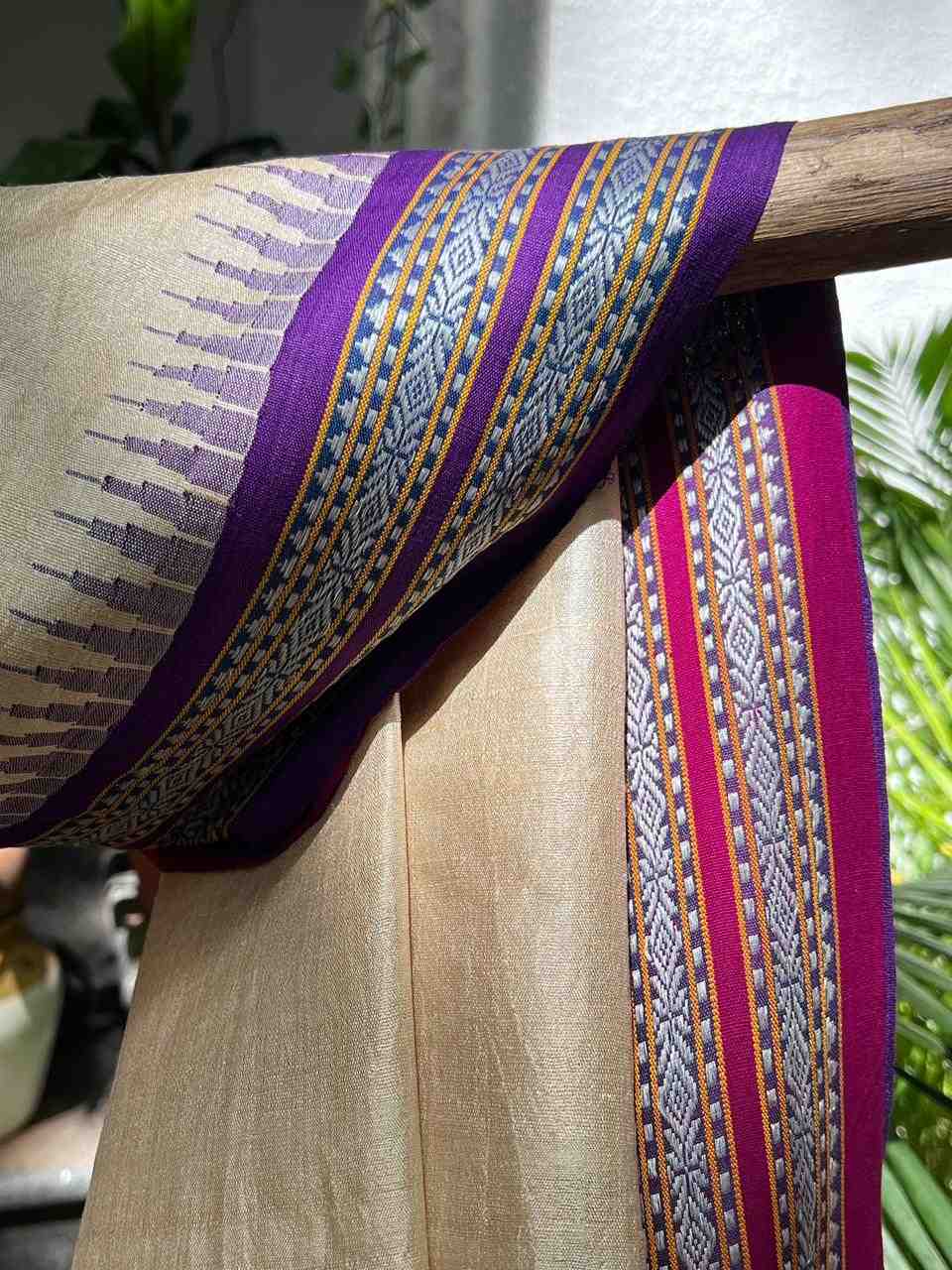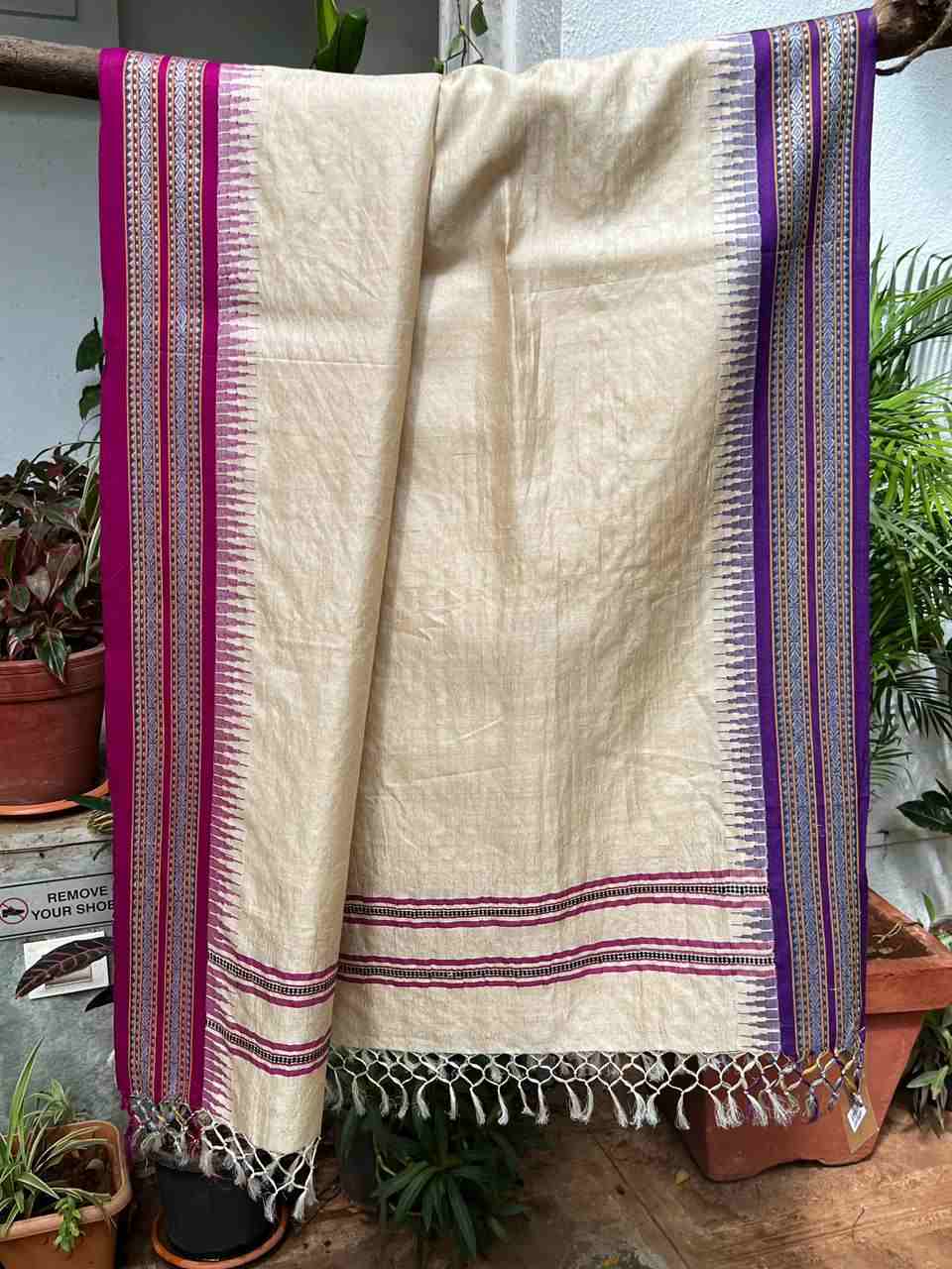Elegant tussar silk dupatta featuring a traditional karvat(saw-tooth) border, rich texture, and natural sheen- perfect for adding classic charm to any ensemble.